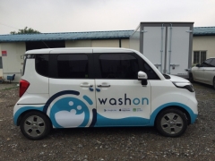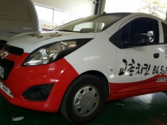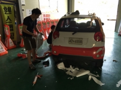 마티즈 랩핑 시공 장면